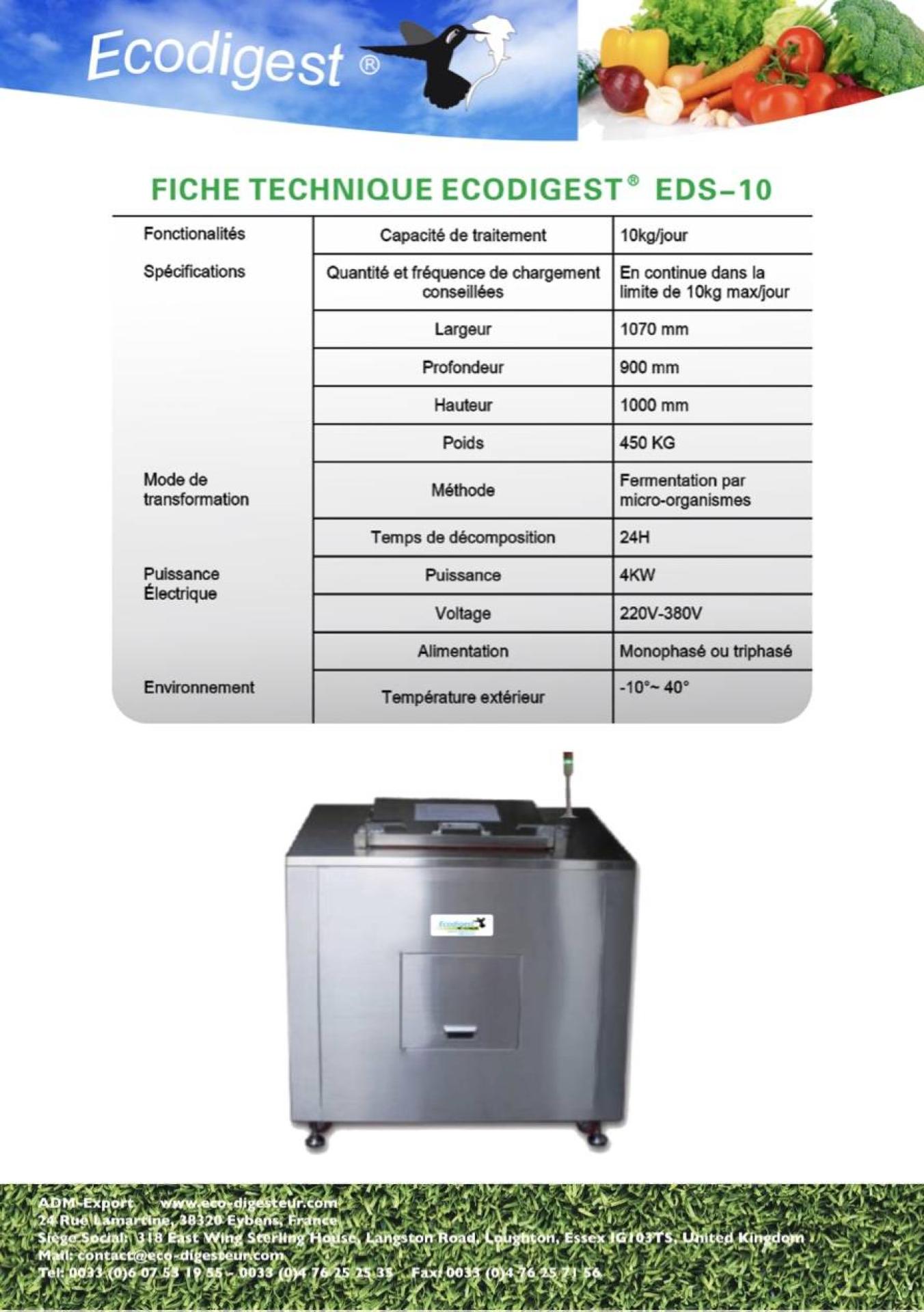 | Capacité de Traitement | 10 Kg /jour |