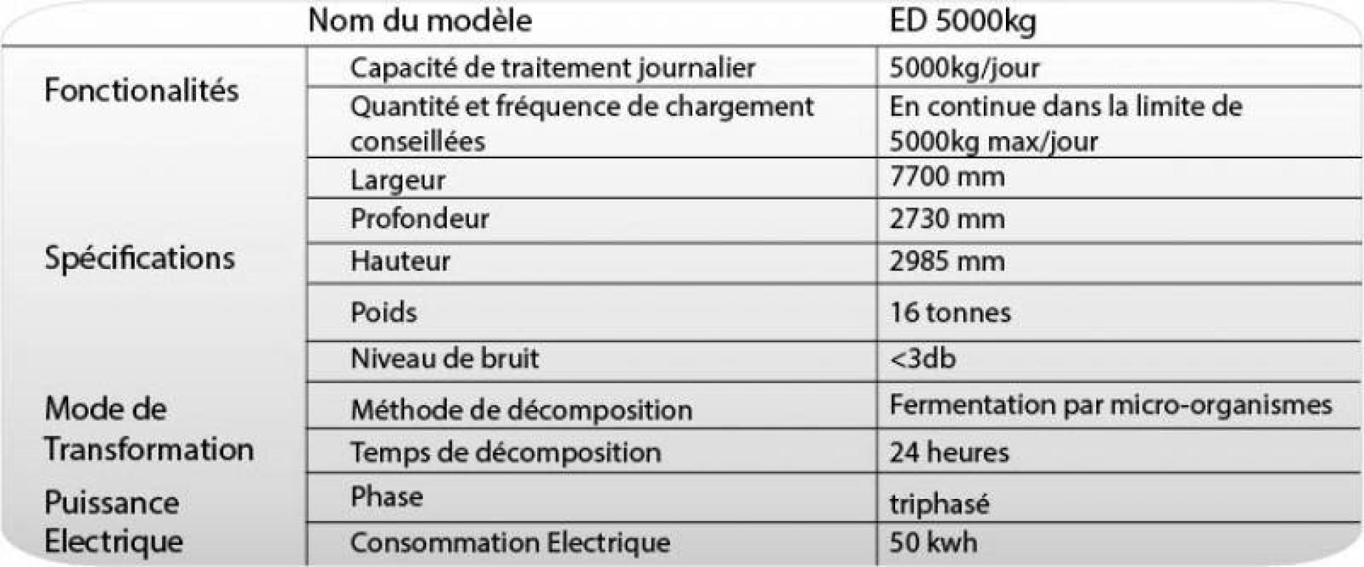 | Fréquence de chargement conseillée | En continu dans la limite de 5000 Kg / j |