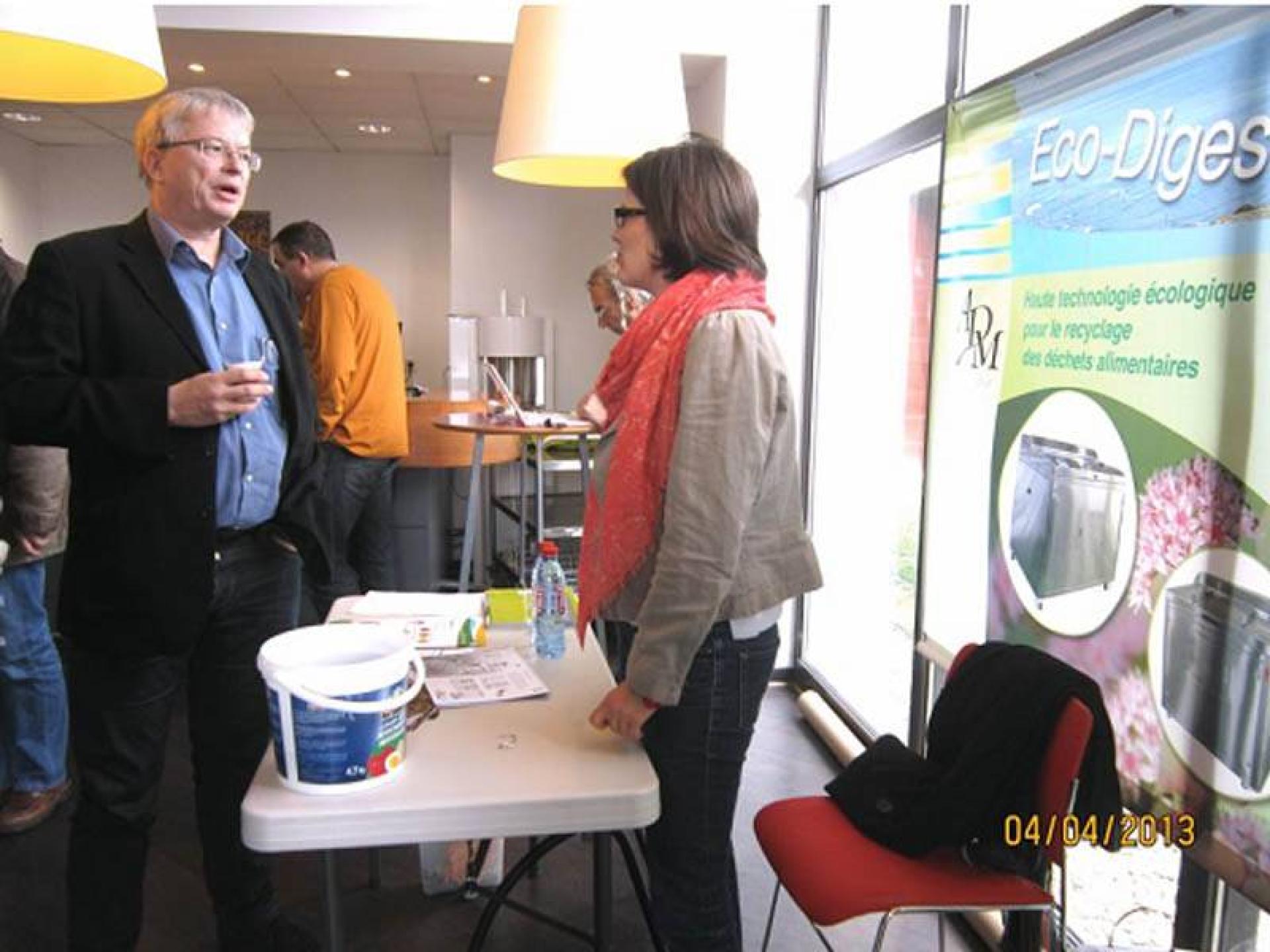 L’Eco-Digesteur est présent du 03/04/13 au 06/04/13, sur les sites de Schneider-Electric en Région Rhône Alpes afin de présenter notre système de réduction des déchets alimentaires en amendement organique, grâce à la collaboration de Mme Annie Lapert, qui a su organiser tous ses événements dans une ambiance conviviale d’échanges d’idées innovantes. Installé dans le restaurant Elior Equinox sur le site d’Eybens, notre solution permet de traiter les déchets de production et de restes d’assiette de 700 repas par jour.